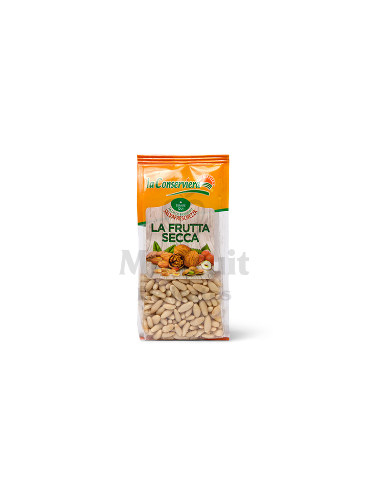 A könnycsepp alakú, ehető bél egy vastag héjban foglal helyet a fenyőtobozban, és másfél év alatt érik be. A legtöbb fenyőmagot vadon élő fenyőkről, kézzel szüretelik még azelőtt, hogy a tobozok kinyílnának. A fenyőmag konyhakész állapotában hosszúkás, elefántcsontszínű, mandulára emlékeztető magbél, hosszúsága általában 1,5 centiméternél kisebb. Nyersen puha textúrájú, íze édeskés és vajas, enyhén pirítva íze intenzívebbé, szerkezete ropogósabbá válik. Gyakran használják bazsalikomos pesto készítéséhez, de hozzáadják salátákhoz és számos desszerthez is kiváló.